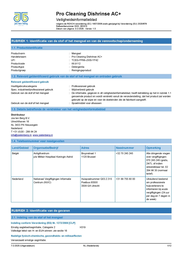 Veiligheidsinformatieblad ECOLAB MAXX INTO C2 1LTR