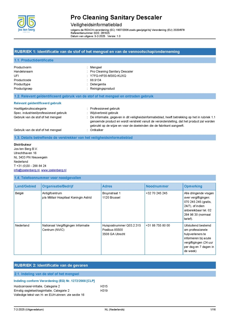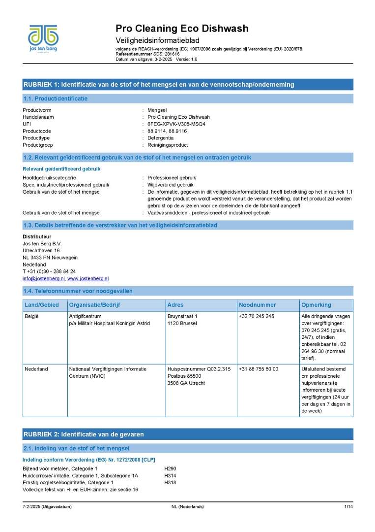Veiligheidsinformatieblad 88.9114 en 88.9116