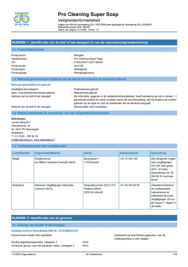 Productinformatie Kaart Pro-Cleaning Supersop