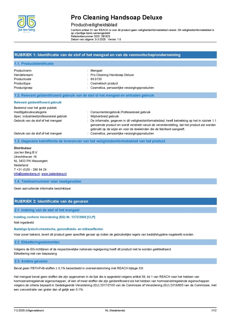 Veiligheidsinformatieblad 88.9100 en 88.9102
