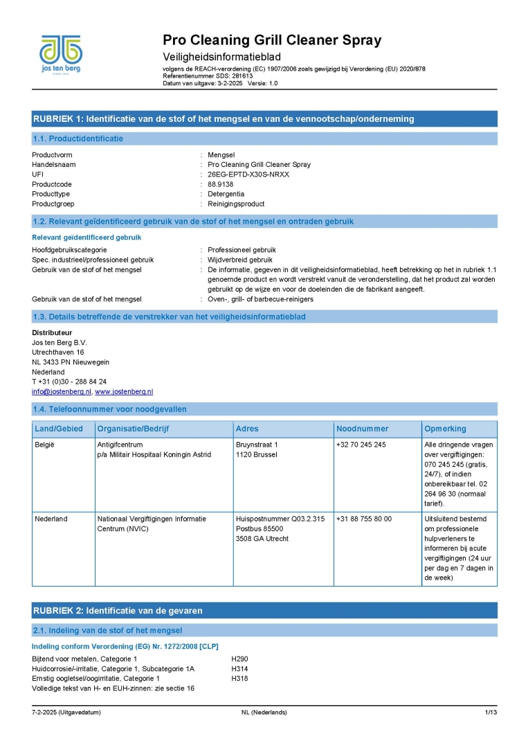 Productinformatie Kaart Pro-Cleaning Grill cleaner