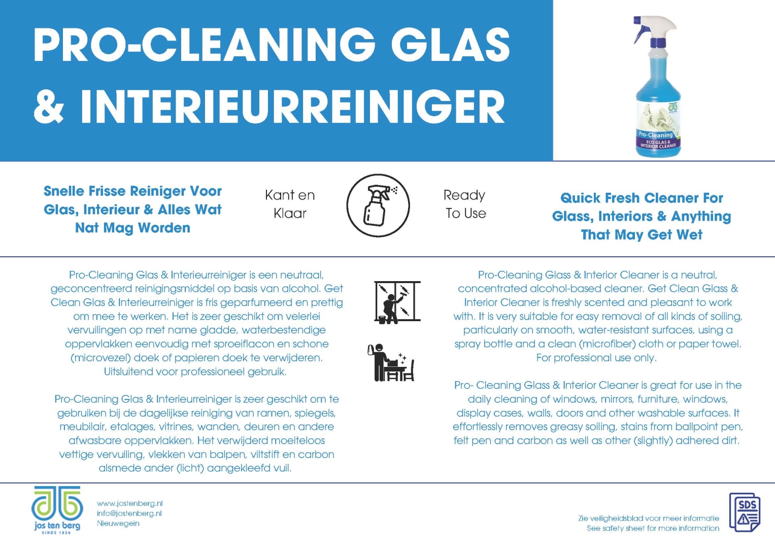 Productinformatie Kaart Pro-Cleaning Glas Interieurreiniger
