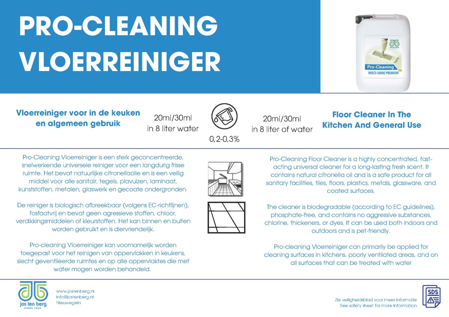 Productinformatie Kaart Pro-Cleaning vloerreiniger